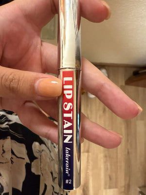 The lip stain provides vibrant color that lasts all day, resisting smudges and fading even with daily activities.